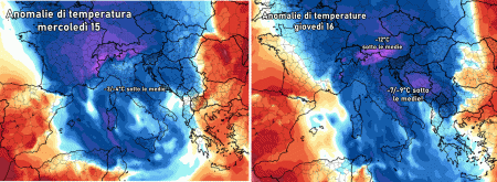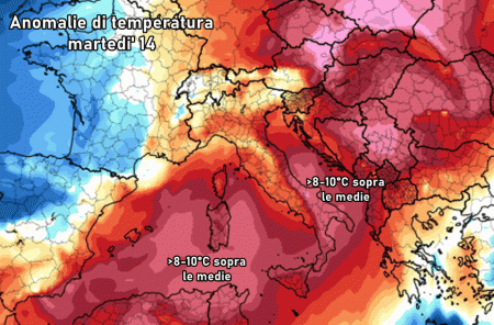 Evidenti, infatti, le anomalie di temperatura previste tra 14, 15 e 16 marzo. Martedì avremo anomalie di oltre 10°C sopra le medie al centro e al sud, mentre mercoledì saremo già immersi in un contesto di sotto media su tutta Italia.