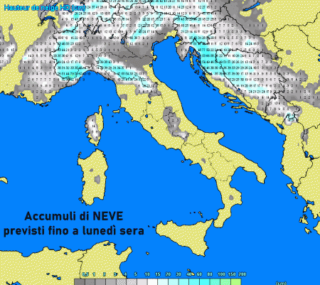 Neve anche nei fondovalle alpini del nordest, mentre la pianura Padana orientale tra Friuli, Veneto, ferrarese e Romagna potrebbe ritrovarsi ai margini della neve.