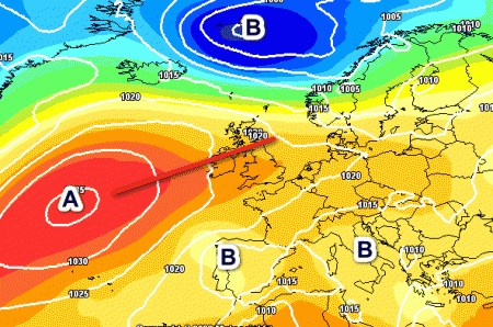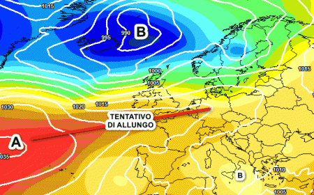 L’asse dell’allungo anticiclonico, quindi del bel tempo, andrà a beneficio delle Isole Britanniche. Più a sud resterà attiva una blanda depressione con instabilità che potrebbe rinnovarsi nelle ore più calde della giornata lungo lo scacchiere italico.