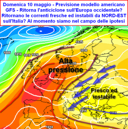 La novità più grande emerge dalle previsioni deterministiche rivolte a lungo termine, che oggi, ironia della sorte, tornano a proporre il vecchio tormentone delle correnti nord-orientali sull’Italia, nonchè sull’Europa. Merito (o demerito) del cronico ripresentarsi di questo pattern, l’insediamento di un nuovo anticiclone sull’Europa occidentale (Regno Unito – Penisola Iberica). Una circolazione ciclonica andrebbe invece scavandosi sull’Europa orientale sin verso l’Italia ed il bacino centrale del Mediterraneo, con conseguenze instabili un po’ ovunque. Valori termici che tornerebbero allineati nelle medie del periodo.