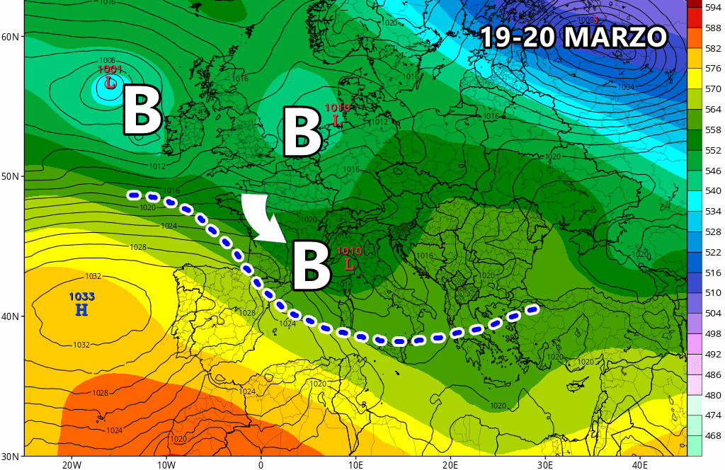 Ma quanto durerà questa stabilità e questo anticiclone? Lo schema barico sarà nettamente diverso da quello che ci ha accompagnato per tutto l’inverno e anche per tutto l’autunno. Sarà molto complicato ritrovarci a fare i conti con anticicloni invadenti e persistenti per tante settimane consecutive; pertanto, potremmo imbatterci in qualche giorno di stabilità e clima gradevole, poi però nuovamente interrotti dalle perturbazioni atlantiche. Infatti, secondo gli ultimi aggiornamenti dei centri di calcolo, pare proprio che tra il 18 e il 20 marzo potrebbero arrivare altre perturbazioni dall’Atlantico, portatrici di piogge, locali temporali e nevicate in montagna.