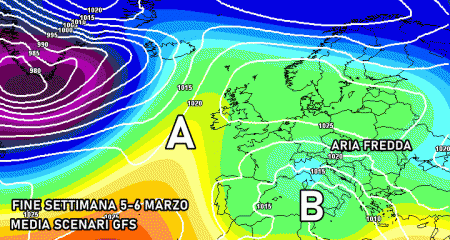 L’alta pressione resterà ben lontana dal Mediterraneo e continuerà a fare la voce grossa tra l’Atlantico orientale e l’Europa occidentale, dando vita ad una barriera in grado di catapultare le ondate di freddo verso l’est Europe a in parte anche verso l’Italia.