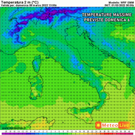 Le temperature massime per domenica: