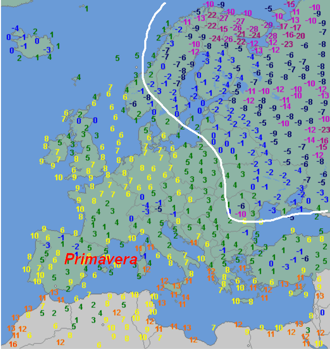 Osservate attentamente la mappa. Su tutto il settore centro-occidentale del Continente è praticamente primavera, con le gelate che sono davvero ridotte. Sul Mediterraneo abbiamo addirittura valori a due cifre, di conseguenza un clima davvero mite per il periodo.