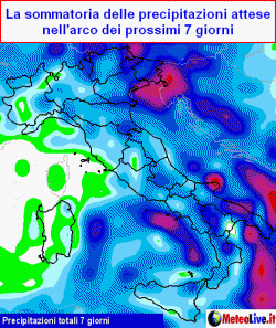 Guarda qui la sommatoria delle precipitazioni attese nei prossimi 7 giorni in Italia: https://www.meteolive.it/speciali/MAPPE/73/Dove-piovera–o-nevichera–e-quanto-in-Italia-nei-prossimi-7-giorni/32551/