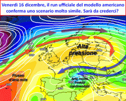 Abbiamo tuttavia ancora degli scenari che mantengono fede alla linea fredda ed instabile per opera delle correnti provenienti da nord-est. Stiamo quindi citando la previsione del modello americano GFS che mantiene ben salda la propria linea di pensiero, proiettando il nostro Paese ad una fase di maltempo invernale dalla giornata di venerdì 16 dicembre in avanti.