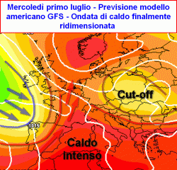 – la seconda evoluzione, quella meno auspicabile, sarebbe caratterizzata dall’affossamento della circolazione depressionaria sui settori occidentali dell’Europa, senza alcuna possibilità che queste masse d’aria più fresca possano spingersi sino all’Europa ed al Mediterraneo centrale.