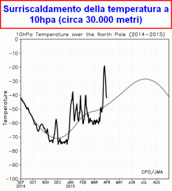 In effetti eventi di questo tipo possono tracciare la strada verso un’evoluzione poco favorevole della stagione primaverile ed estiva. L’avvio di questo intenso surriscaldamento stratosferico risulta bene osservabile dall’inversione dei venti zonali a 10hpa e 50hpa, in propagazione verso i piani più bassi, quindi al limite tra la stratosfera e la troposfera. Ancora incerta risulta la propagazione di questo calore verso gli strati prossimi al suolo, riferendoci quindi al famigerato processo di "coupling" del calore attraverso la tropopausa e quindi agli effetti tangibili di questa manovra sulla circolazione atmosferica dell’emisfero boreale.