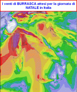 La cartina che vedete di fianco inquadra i venti attesi sull’Italia nelle ore centrali della giornata di mercoledì 25 dicembre.