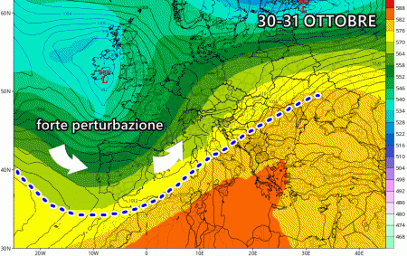 Nei prossimi giorni, ci aspettiamo l’arrivo di una serie di perturbazioni intervallate da brevi fasi di miglioramento con variabilità e condizioni meteorologiche più miti e soleggiate. Una di queste perturbazioni è prevista tra il 30 e il 31 ottobre, e sembra essere più intensa di quella attualmente in transito sulla nostra penisola.