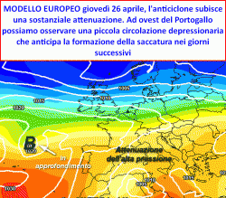Senza dubbio la novità più rilevante, già messa in luce dai modelli nei giorni scorsi, sarà la nuova controffensiva di natura instabile che tornerà alla ribalta attraverso la formazione di una saccatura, cioè una figura di bassa pressione che entro venerdì 27 aprile, dovrebbe posizionare il proprio asse sul Golfo di Biscaglia e la Penisola Iberica.