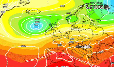 Dopo il passaggio temporalesco atteso tra il 30 giugno e il 2 luglio, avremo una fase più stabile ma comunque non troppo calda. Addirittura spunta un’altra possibile incursione fresca in quota tra 5 e 7 Luglio, la quale garantirebbe altri temporali sparsi da nord a sud ed anche un lieve calo delle temperature.