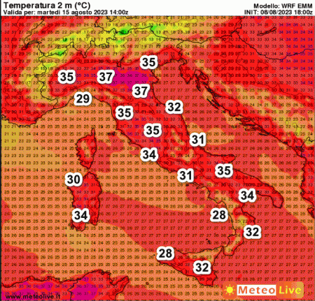 Infine queste sono le temperature previste per la giornata di Ferragosto, attorno alle ore 16: