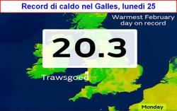 risultate straordinariamente elevate ed i valori misurati al suolo hanno varcato la soglia dei +20°C in diverse occasioni. I valori medi sono stati più tipici del mese di aprile inoltrato piuttosto che di febbraio, sono stati abbattuti diversi record assoluti di temperatura.
