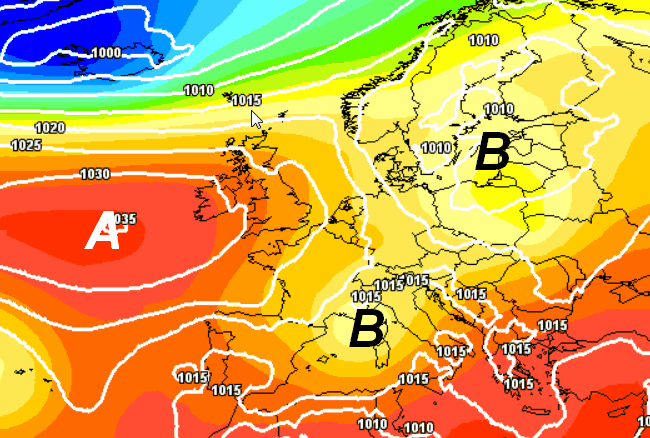 Con una goccia fredda del genere, contrassegnata con la lettera B, non si potrà sperare di avere la stabilità sulle nostre regioni. Ovviamente non pioverà dalla mattina alla sera, ma il tempo sarà spesso inaffidabile specie al pomeriggio, nelle zone interne e al nord.
