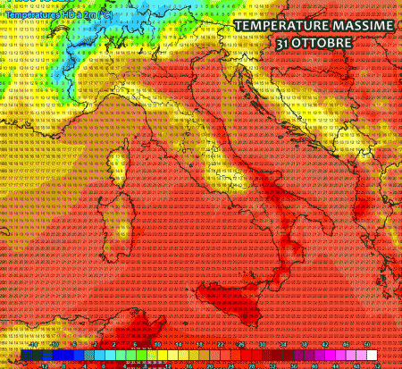 Osservando le temperature massime previste per il 31 ottobre, è evidente un’inaspettata anomalia di calore nel sud, con massime che potrebbero raggiungere i 27-29 °C, temperature tipiche di fine estate. Il clima sarà gradevole anche nel Centro Italia e nel Nord-Est, mentre un po’ di fresco in più sarà presente nel Nord-Ovest.
