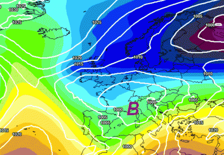 Come vedete, sul nostro Continente non vi sarà piu traccia di alta pressione. La struttura depressionaria che vedete nell’immagine sarà in grado di riportare la pioggia su molte aree della nostra Penisola.