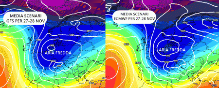 Media degli scenari di GFS e ECMWF molto simili, entrambe confermano l’irruzione fredda del week-end e di inizio prossima settimana: