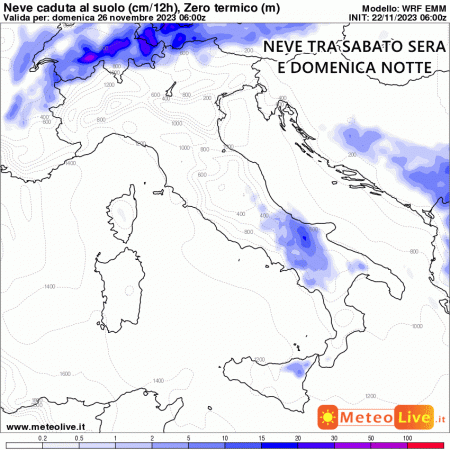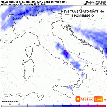 Grazie al poderoso calo termico che avrà inizio già dalle prime ore di sabato, ci aspettiamo l’arrivo della neve a quote relativamente basse. Il fronte freddo del ciclone comporterà nevicate inizialmente oltre i 900 metri sull’Appennino centrale, dopodiché tra tarda mattina e pomeriggio di sabato la neve scivolerà sin verso le colline.