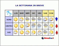 Da mercoledì nubi su tutta l’Italia, con precipitazioni anche rilevanti al nord, intermittenti al centro e sulla Sardegna, più sporadiche al sud, dove il peggioramento si farà probabilmente avanti a partire dal prossimo fine settimana.