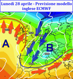 Secondo questo aggiornamento, una volta superato il 25 aprile sarebbero almeno DUE i sistemi depressionari che attraverserebbero il nostro Paese. Il primo nel corso di domenica 27 e lunedì 28, il secondo è atteso mercoledì 30 con provenienza nuovamente settentrionale. Il mantenimento di queste condizioni di instabilità sarebbe garantito dalla costante presenza di ANTICICLONI posti alle latitudini settentrionali europee.