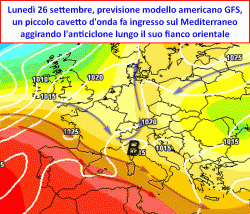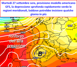 Sulle regioni del NORD, il passaggio instabile sarebbe veloce ed effimero, precipitazioni e locali temporali potrebbero manifestarsi segnatamente lunedì 26 settembre. Sul CENTRO la goccia fresca sopraggiungerebbe tra la serata di lunedì 26 e la giornata di martedì 27, con fenomeni distribuiti sia sui versanti adriatici che su quelli tirrenici. Tra la serata di martedì 27 e mercoledì 28, rovesci e temporali conquisterebbero anche il SUD, insistendo in loco per alcuni giorni.