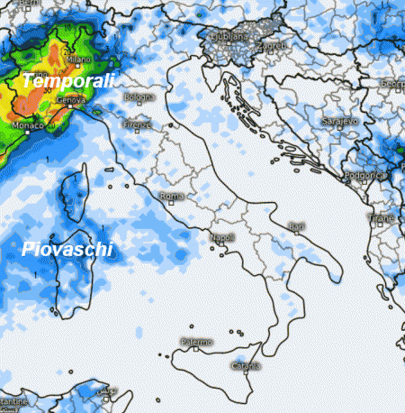 Secondo questo elaborato, i fenomeni più intensi colpirebbero il Golfo Ligure, risalendo poi verso il basso Piemonte e la bassa Lombardia. Alcuni temporali sarebbero presenti anche nelle aree interne dell’Italia centrale, senza escludere locali piovaschi sulla Sardegna. Su tutte le altre regioni non dovrebbe piovere con il sole dominante sugli eventuali annuvolamenti, sotto l’egida di temperature ancora piùttosto elevate.