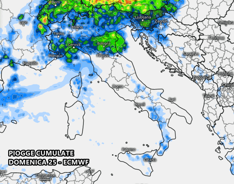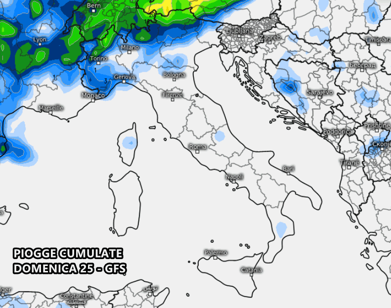 Per quanto riguarda la giornata di domenica 25 l’incertezza previsionale sale ulteriormente, come giusto che sia a questa distanza temporale. Il modello americano GFS propone altra debole instabilità segnatamente sul Nord-ovest e arco alpino, mentre sul resto d’Italia il tempo sarebbe molto più stabile.