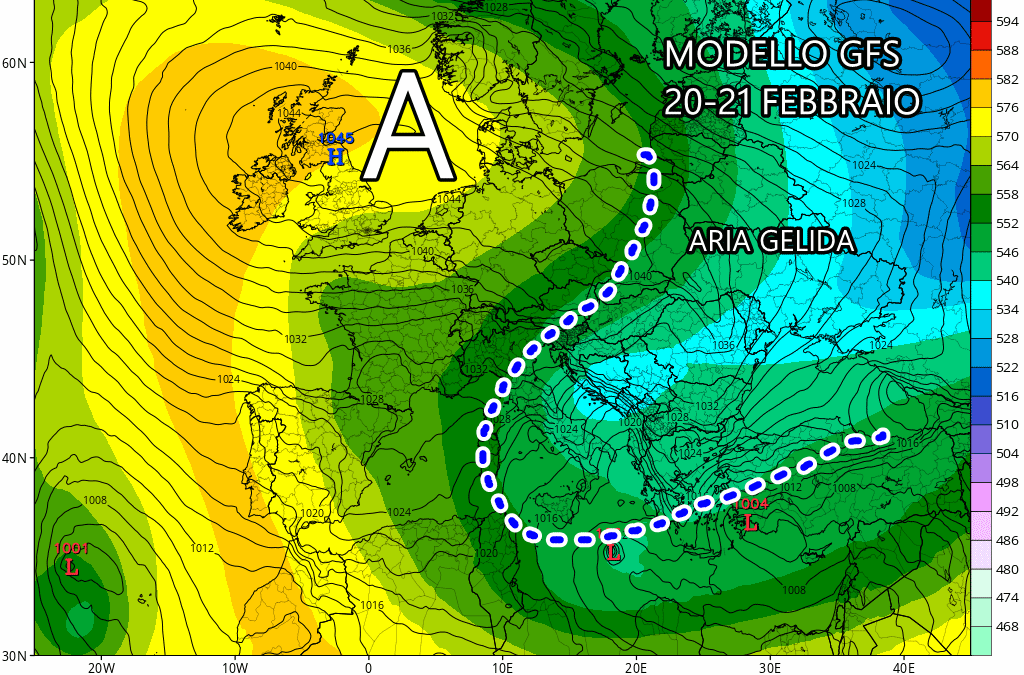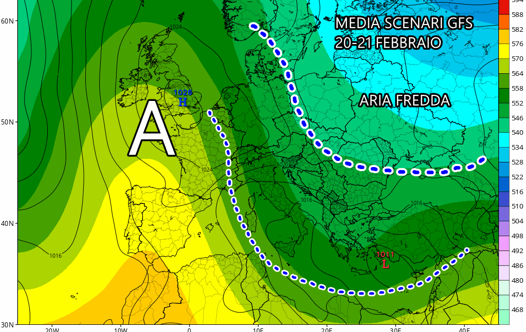 Torna l'alta pressione da San Valentino, ma il modello americano insiste per l'arrivo del gelo da est.