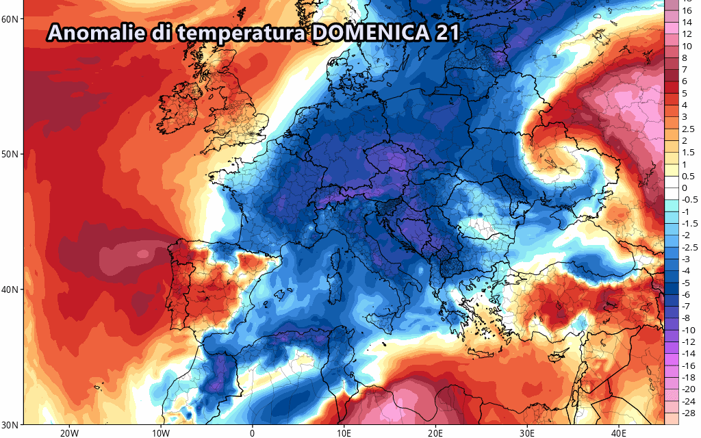 Gli scenari peggiori arriveranno proprio a partire dal weekend, quando la massa d’aria fredda diverrà un po’ più stabile e permetterà un forte irraggiamento notturno che farà crollare le temperature su gran parte d’Italia. Questo non significa che avremo a che fare con bel tempo ovunque, anzi i forti contrasti termici tra il freddo in alta quota e la calura mattutina che si accumulerà nei bassi strati sarà responsabile di acquazzoni e temporali pomeridiani e serali.