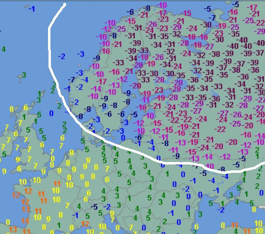 Fa davvero impressione la massa di GELO che si è impossessata dell’Europa nord-orientale e la vicina Russia. Si tratta di gelo estremo che pende come una spada di Damocle sul capo di mezza Europa.