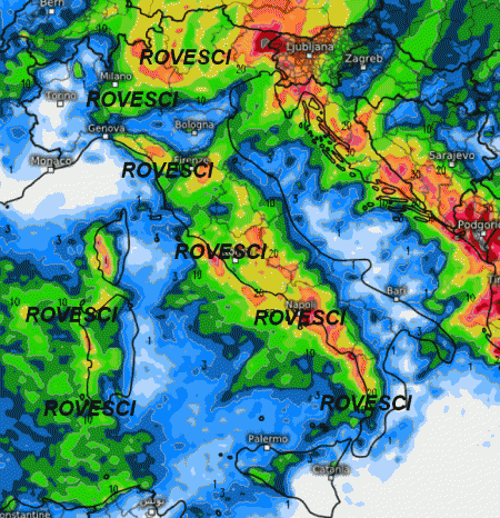 Questa invece è la sommatoria delle precipitazioni attese in Italia nell’arco della giornata di venerdi 3 novembre: