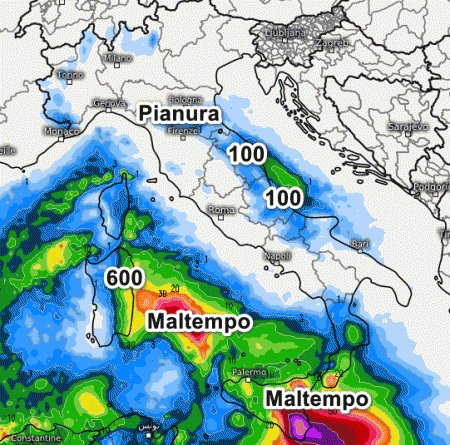 Il maltempo cingerà d’assedio la Sicilia, specie i settori orientali dove si prevedono rovesci intensi e neve abbondante sopra gli 800-1000 metri. Coivolto marginalmente anche il sud della Calabria. Maltempo anche sulla Sardegna orientale con piogge e neve oltre i 600 metri.