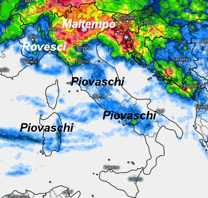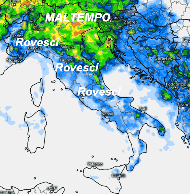 Giovedi e venerdi MALTEMPO anche INTENSO su alcune regioni