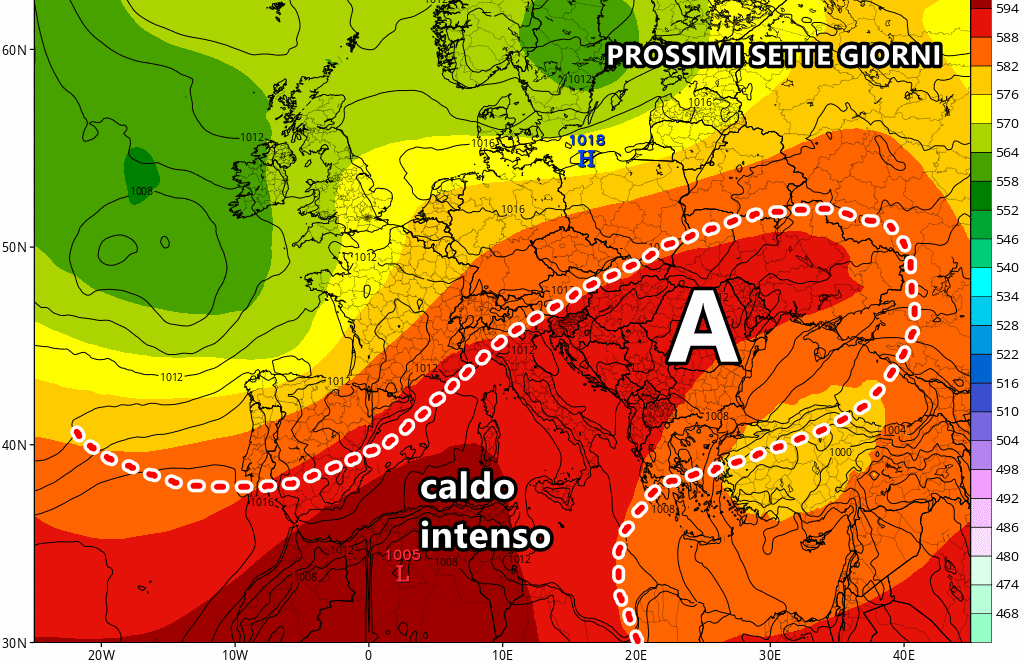 Tuttavia, non dobbiamo sottovalutare gli improvvisi temporali di calore che potranno svilupparsi in quei settori dove l’anticiclone non sarà particolarmente robusto. Dobbiamo ricordare, infatti, che il cuore dell’anticiclone stazionerà sul Centro-Sud Italia e le isole maggiori, mentre il Nord sarà leggermente meno protetto. Sia chiaro, ciò non significa che non farà caldo al Nord, anzi tutt’altro: le temperature saranno costantemente sopra le medie del periodo sia di notte che di giorno su tutto il Nord Italia per almeno altri 10 giorni.