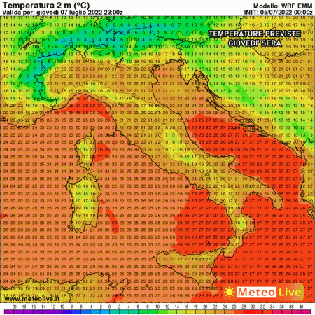 Con maggior precisione possiamo già individuare il momento esatto in cui le temperature inizieranno a scendere. Tra il pomeriggio e la sera di giovedì irromperanno le prime correnti fresche in alta quota che daranno luogo ad acquazzoni e temporali, ma in un contesto ancora piuttosto caldo e soprattutto umido.