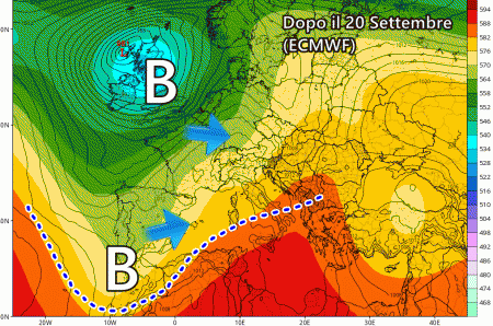 La terza decade del mese si preannuncia dinamica, secondo le previsioni dei principali centri di calcolo, sia l’europeo ECMWF che l’americano GFS. Il modello europeo prevede l’arrivo di una saccatura fresca già dal 20 settembre, soprattutto al nord, portando un deciso peggioramento del tempo, mentre al sud potremmo avere gli ultimi giorni caldi: