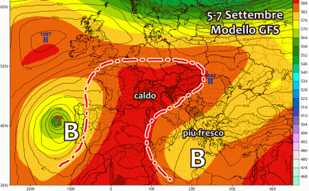 Una di queste ondate potrebbe manifestarsi con buona probabilità all’inizio della prossima settimana, come già annunciato nei giorni scorsi. Tuttavia, dobbiamo ammettere che esistono ancora molte incertezze sia sull’intensità dell’ondata di caldo sia sulla sua durata. Tutto dipenderà dalla traiettoria delle varie depressioni che attraverseranno l’Europa nei primi giorni di settembre. Una su tutte, la depressione che si posizionerà sulla penisola iberica, determinerà direttamente l’intensità e la durata del caldo in Italia.
