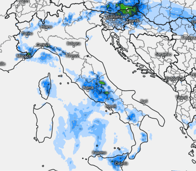 Temporali pomeridiani su Val d’Aosta, alto Piemonte, Alto Adige, Alpi Marittime, Appennino Ligure, zona interne poste tra bassa Toscana e Lazio, zone interne campane e calabresi unitamente alle aree interne della Sicilia. Su tutte le altre regioni assenza di fenomeni.