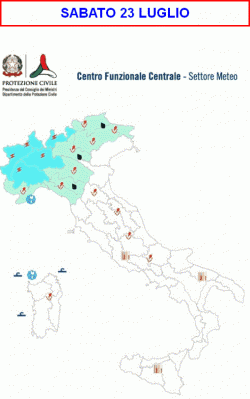 I TEMPORALI di sabato 23 luglio secondo la PROTEZIONE CIVILE
