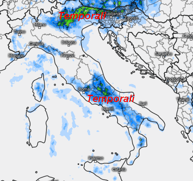 Si tratterà di fenomeni essenzialmente isolati e pomeridiani che saranno presenti sul settore alpino e prealpino centro-orientale, con scarso rischio di sconfinamento lungo le pianure sottostanti. Temporali pomeridiani anche sui rilievi della Liguria di Levante, e isolatamente lungo la dorsale appenninica centro-meridionale. Su tutte le altre regioni tempo generalmente stabile.