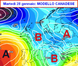 Il terzo tenore non può che essere il modello canadese, che vede una situazione un po’ diversa rispetto agli altri due, ma complessivamente favorevole per una virata a condizioni spiccatamente invernali sull’Italia.