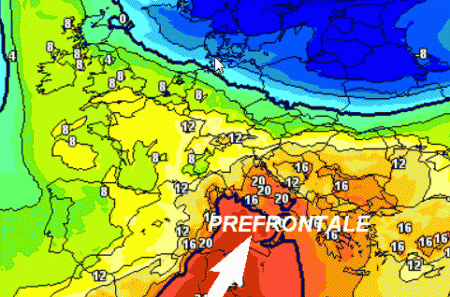 Mentre il settentrione e la Toscana saranno sotto piogge intense e temporali con possibili criticità, parte delle regioni centrali e il meridione verranno raggiunte da correnti molto calde provenienti dal nord Africa. Si tratterà del richiamo caldo prefrontale che anticiperà la perturbazione e favorirà molti contrasti sull’alta Italia.