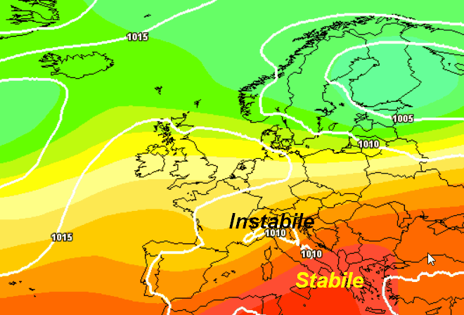 La tendenza è quasi sovrapponibile a quella del modello americano, con il settentrione e parte del centro alle prese con temporali ed instabilità, mentre il sud resterebbe in compagnia di sole e caldo.