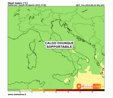 In questa sede monitoreremo l’indice di calore (o indice di disagio da caldo) atteso in Italia nell’arco del prossimo fine settimana (per tutti i dettagli sull’indice di calore, si legga questo articolo: www.meteolive.it/news/Ti-segnaliamo/49/ti-segnaliamo-cos-l-indice-di-calore-/97746/)