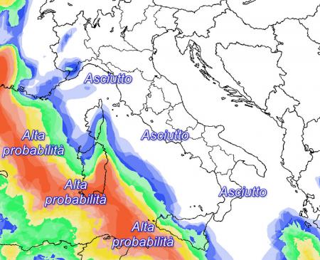 MEDIO E LUNGO TERMINE. L’arrivo della prossima settimana vedrà un’ampia circolazione di bassa pressione stabilire la propria sede sulla penisola Iberica. Almeno in un primo memento la progressione di questo sistema depressionario verso il Mediterraneo centrale avrà scarse probabilità di successo.