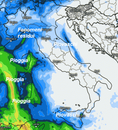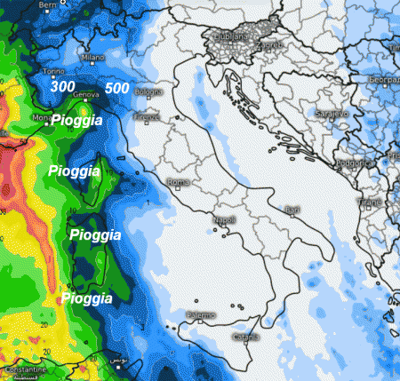 Questa invece è la sommatoria delle precipitazioni attese in Italia nell’arco della giornata di sabato 9 dicembre: