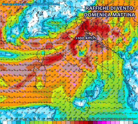 Nel frattempo si intensificherà anche il vento di libeccio su Sardegna, Liguria orientale, Toscana, Lazio, Campania, con raffiche molto forti, oltre i 50 km/h. Il picco della libecciata arriverà tra la mattina e il pomeriggio di domenica su tutto il centro Italia e la catena appenninica: secondo le ultime previsioni si ipotizzano raffiche fino a 100 km/h tra Marche e Abruzzo, sin verso le coste, e addirittura in montagna si potrebbero superare i 130 km/h. Sul meridione ci aspettiamo raffiche di libeccio tra i 50 e 80 km/h.