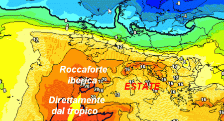 Un fiume d’aria bollente proveniente direttamente dal tropico continuerà ad usare la Penisola Iberica come rampa di lancio per propagarsi a quasi tutta l’Europa centro-meridionale; immaginate una grande vela che si gonfia continuamente di aria bollente che continua ad affluire senza sosta da quel punto. Ecco l’alta pressione che ci sta interessando!