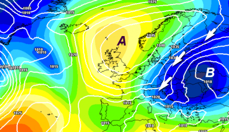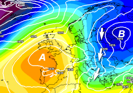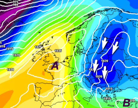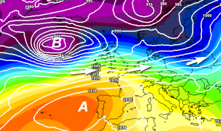 Il solito anticiclone "monstre", fedele compagno dell'inverno italiano, insidiato da masse d'aria fredda in arrivo dall'Artico.